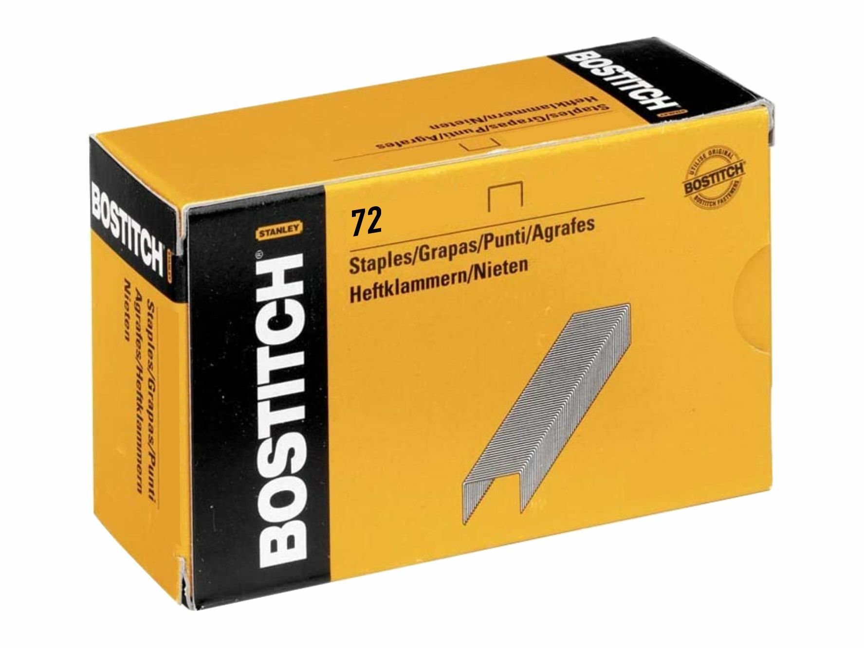 Heftklammer 72 passend für Klammergeräte der Marke Stanley Bostitch. Bitte beachten Sie, dass unsere Klammern teilweise KEINE Original-Stanley Bostitch Heftklammern sind. Unsere Klammern sind Qualitätsklammern europäischer und deutscher Hersteller, die aufgrund identischer Abmessungen kompatibel mit den entsprechenden Klammergeräten der Marke Stanley Bostitch sind.